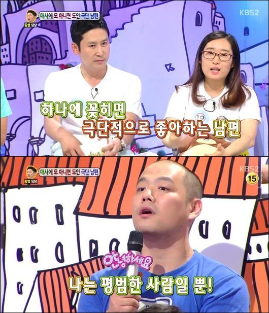7일 방송된 KBS 2TV 예능프로그램 '안녕하세요'에는 극단적인 남편으로 고민하는 여성이 출연했다.