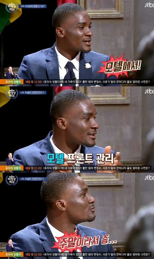 이에 MC들이 "모텔에 들어 간 한국인들이 놀라지 않았냐"고 묻자 샘 오취리는 "날 보고 놀라서 돌아간 사람은 없었다"고 말해 웃음을 자아냈다.