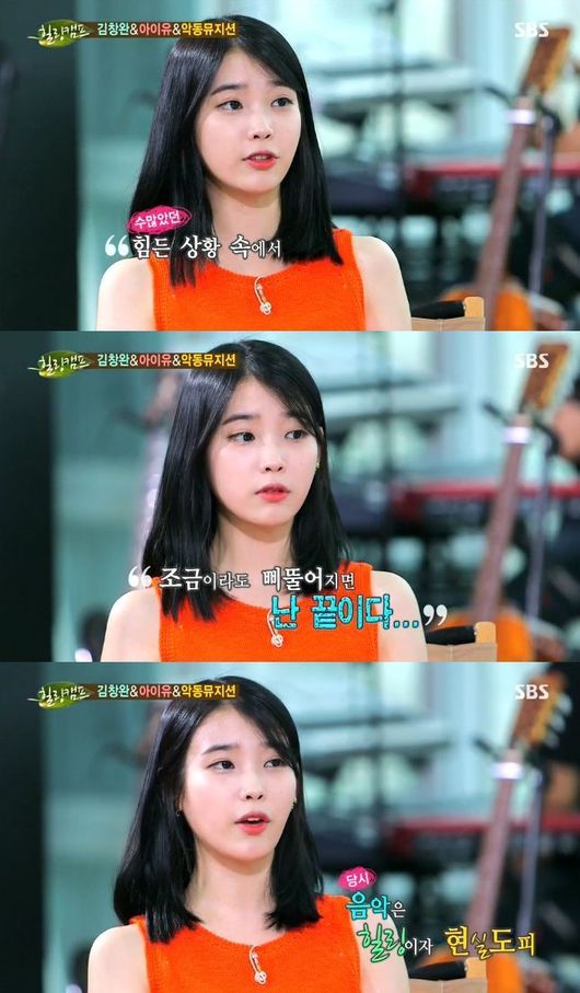 아이유는 7일 오후 방송된 SBS 예능프로그램 '힐링캠프, 기쁘지 아니한가'(이하 '힐링캠프')에서 자신의 어린 시절을 회상하며 "나는 비뚤어지면 끝이다,라고 생각했다. 돌아갈 집이 없으니까. 집이 있는 애들은 자기 집을 찾아간다. 돌아갈 집이 없는 친구들은 계속 방황을 하더라"라고 말했다.