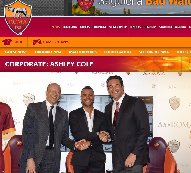 첼시를 떠난 애슐리 콜(34)이 이탈리아 세리에A 명문 AS 로마에 새 둥지를 틀었다.