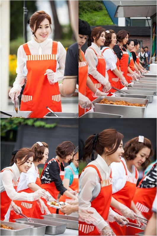 공개된 사진에는 앞치마를 두른 채 환한 미소로 음식을 나누어 주며 무료 급식 행사를 하고 있는 문정희의 모습이 담겨있다. 극 중 딸 보나(조민아 분)의 학교 봉사시간을 채우기 위해 같은 ‘아사모’(아이들을 사랑하는 엄마들의 모임) 회원인 도희(전수경 분), 효정(정수영 분)과 함께 봉사하는 그는 영락없는 ‘교육 열혈맘’으로 분한 모습.