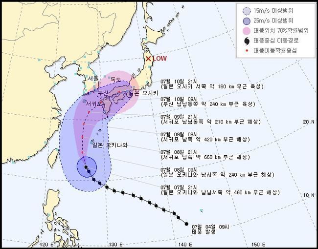 제8호 태풍 ‘너구리’(NEOGURI)의 예상 경로가 화제에 올랐다.