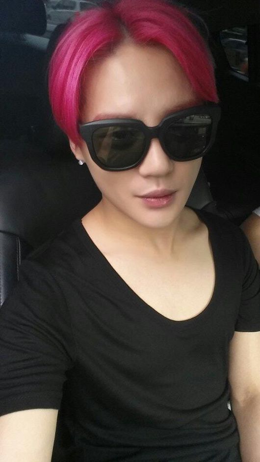 사진 속 김준수는 검은색 티셔츠와 선글라스로 수수한 차림을 하고 있다. 특히 뮤지컬 ‘드라큘라’ 출연으로 염색한 핑크빛 머리가 돋보인다.