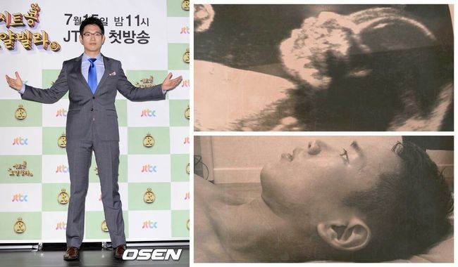 태아의 옆모습이 찍힌 초음파사진 아래에 장성규 본인의 옆모습이 담긴 사진을 나란히 배치했다. 작은 태아인데도 라인이 뚜렷해 눈길을 끈다. 특히 옆모습이 장성규 아나운서와 꼭 닮아 ‘영락없는 부자지간’이란 사실을 알 수 있게 한다.