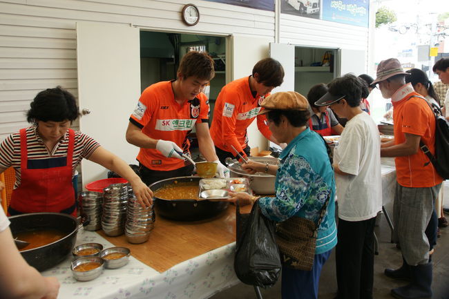 이날 제주에서는 한용수와 황인호가 참석해 65세 이상 어르신을 대상으로 무료 급식 봉사를 실시했으며 홈 경기 홍보도 펼쳤다.