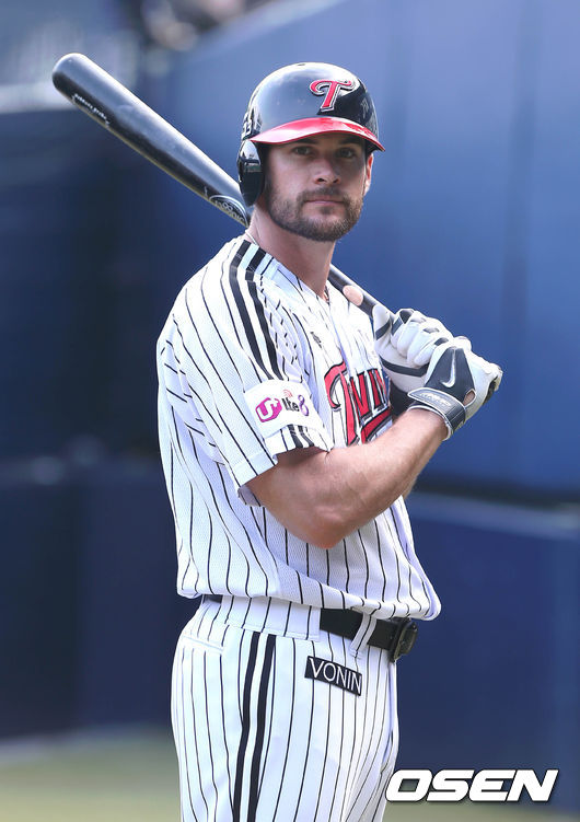 8일 오후 서울 잠실구장에서 열린 2014 한국야쿠르트 세븐 프로야구 두산 베어스와 LG 트윈스의 경기에 앞서 LG 브래드 스나이더가 포토타임을 갖고 있다.