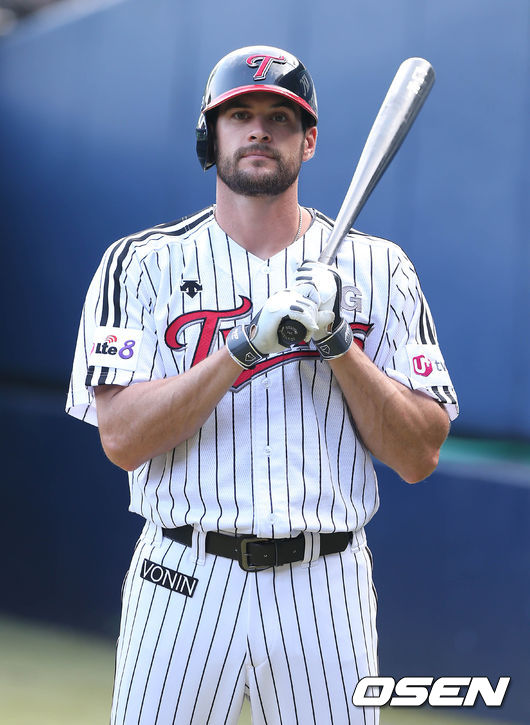 8일 오후 서울 잠실구장에서 열린 2014 한국야쿠르트 세븐 프로야구 두산 베어스와 LG 트윈스의 경기에 앞서 LG 브래드 스나이더가 포토타임을 갖고 있다.