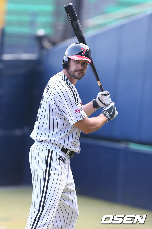 8일 오후 서울 잠실구장에서 열린 2014 한국야쿠르트 세븐 프로야구 두산 베어스와 LG 트윈스의 경기에 앞서 LG 브래드 스나이더가 포토타임을 갖고 있다.