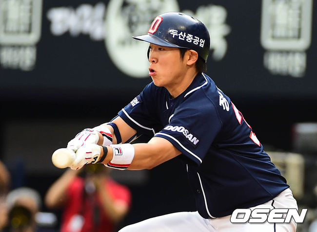 기습번트 안타로 타점 올린 정수빈,'요건 몰랐지'
