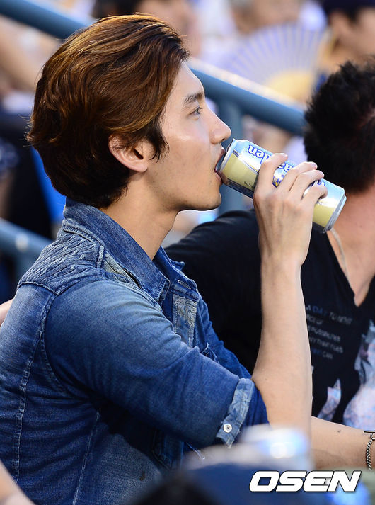 8일 오후 서울 잠실구장에서 열린 2014 한국야쿠르트 세븐 프로야구 LG 트윈스와 두산 베어스 경기, 동방신기 멤버 최강창민이 객석에서 경기를 지켜보고 있다.