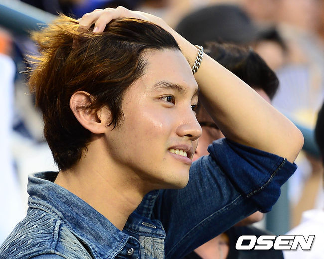 8일 오후 서울 잠실구장에서 열린 2014 한국야쿠르트 세븐 프로야구 LG 트윈스와 두산 베어스 경기, 동방신기 멤버 최강창민이 객석에서 경기를 지켜보고 있다.