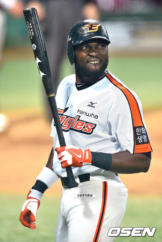 8일 오후 충북 청주구장에서 열린 2014 한국야쿠르트 세븐 프로야구 한화 이글스와 넥센 히어로즈의 경기,3회말 2사 만루 한화 피에가 홈런성 파울타구를 날린후 아쉬워하고 있다.