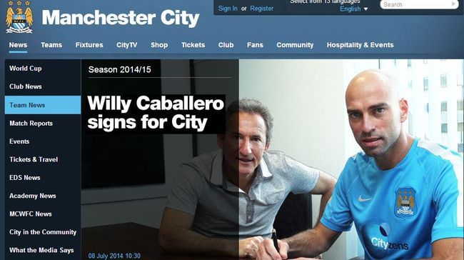 말라가의 윌리 카바예로(34)가 맨체스터 시티로 이적했다.