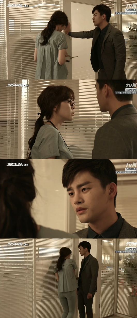 8일 방송된 tvN 월화드라마 '고교처세왕'(극본 양희승 조성희, 연출 유제원) 8회분에서는 민석(서인국 분)이 수영(이하나 분)에게 사랑을 고백하는 내용이 그려졌다.