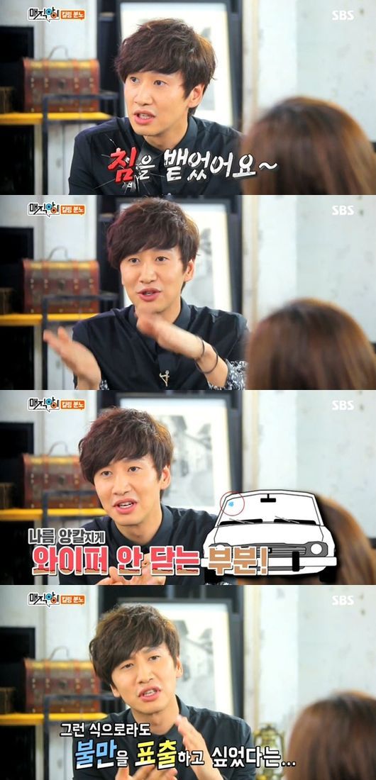 [OSEN=안보겸 인턴기자] 배우 이광수가 불만을 표출하기 위해 차량 앞유리에 침을 뱉은 사연을 공개했다.