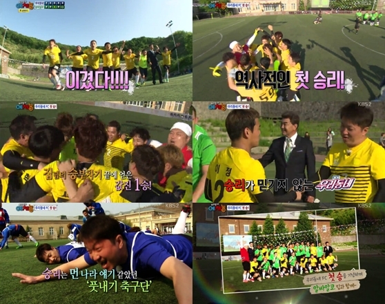 승패는 승부차기에서 갈렸다. 알싸알코 FC의 실축과 서지석, 윤두준, 김흥국, 이기광, 민호 5명 모두 승부차기에 성공해 우리동네 FC는 꿈에 그리던 첫 승을 따냈다. 그동안 수많은 경기에서 패배의 쓴맛을 보든 우리동네 FC가 드디어 승리라는 달콤한 맛을 보게 된 것이다.