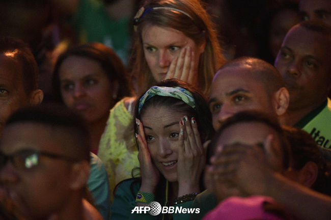 [브라질-독일]얼굴 감싸쥔 브라질 팬들,'차라리 꿈이었으면'