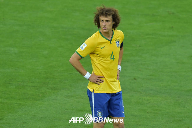 전반 독일에게 다섯 골을 허용한 브라질 주장이자 수비수인 다비드 루이스가 그라운드를 바라보고 있다..
