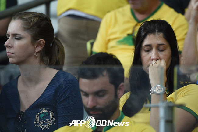 브라질 축구팬들이 팀의 연속 골 허용을 지켜보며 안타까워하고 있다./photo@osen.co.kr