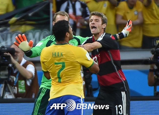 후반 독일 토마스 뮐러와 브라질 헐크가 신경전을 벌이고 있다./photo@osen.co.kr