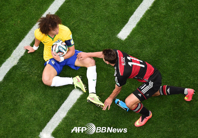독일 클로제가 브라질 다비드 루이스에게 공을 넘겨달라고 요청하고 있다./photo@osen.co.kr