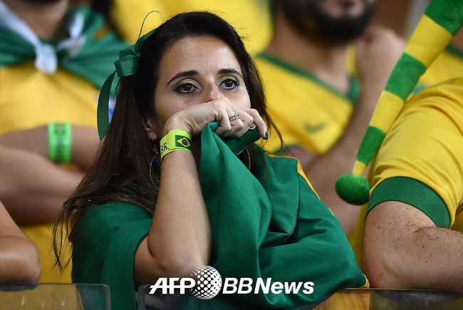 팀의 연속 골 허용을 바라보며 브라질 축구팬들이 안타까워하고 있다./photo@osen.co.kr