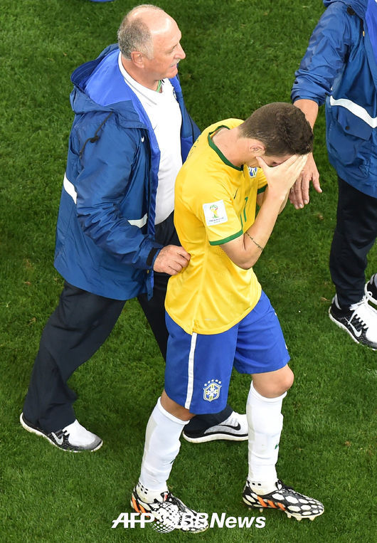 브라질 스콜라리 감독과 공격수 오스카가 아쉬운 표정으로 경기장을 나서고 있다./photo@osen.co.kr