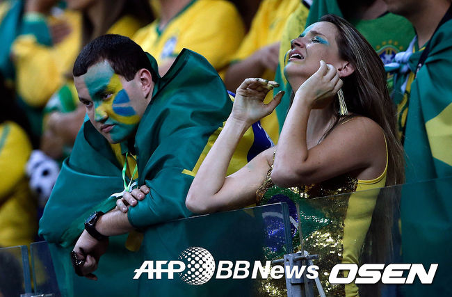 브라질 팬들이 팀의 연속골 허용을 지켜보며 아쉬워하고 있다./photo@osen.co.kr