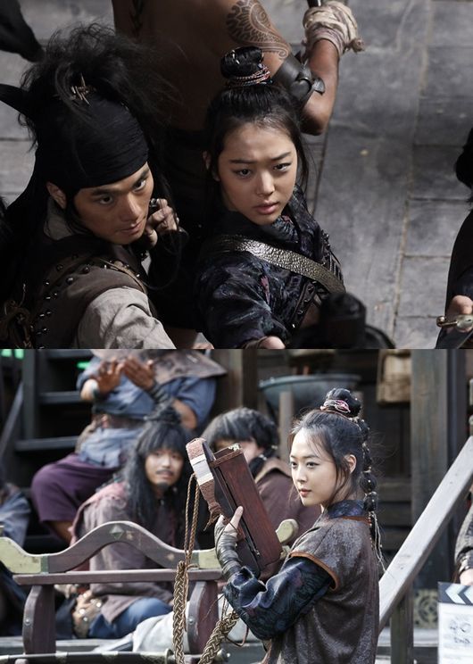 두 번째 스틸은 흑묘가 해적단, 산적단, 개국세력이 치열한 격전을 벌이고 있는 선상에서 함께 싸우기 위해 연노를 장전하고 있는 장면. 앳된 얼굴, 새초롬한 표정과 야무진 연노 동작은 막내 해적으로 열연한 설리의 변신에 대한 궁금증을 증폭시킨다.