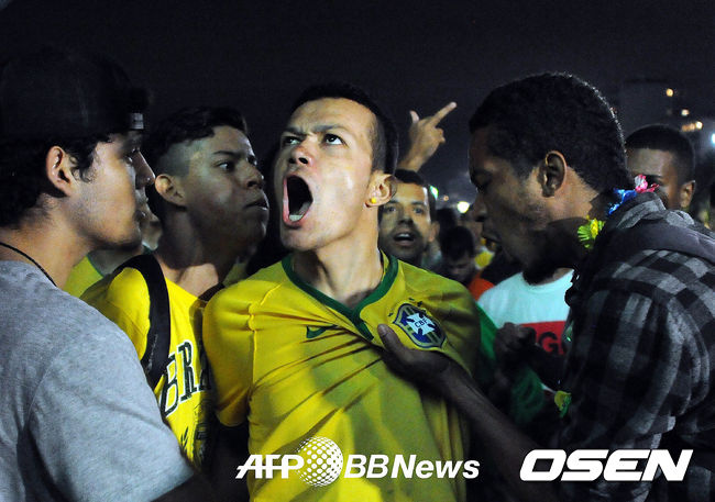 리우데자네이루의 브라질 축구팬이 팀의 연속 골을을 지켜보며 흥분하고 있다./photo@osen.co.kr