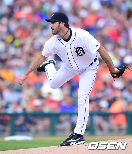 1회초 무사에서 디트로이트 선발투수 저스틴 벌랜더가 힘차게 공을 던지고 있다.