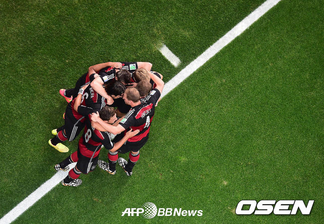 독일 선수들이 연속 골을 작렬시킨 뒤 환호하고 있다./photo@osen.co.kr