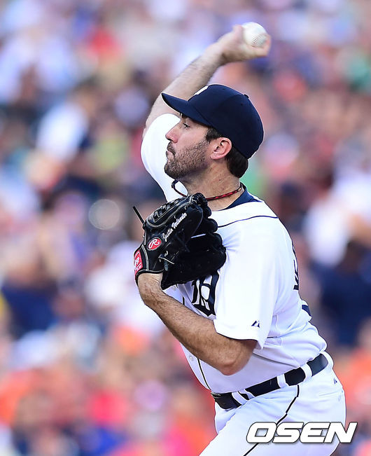 1회초 무사에서 디트로이트 선발투수 저스틴 벌랜더가 힘차게 공을 던지고 있다.