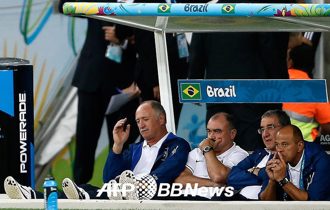 브라질 스콜라리 감독을 비롯한 코칭스태프가 팀의 대패를 지켜보며 아쉬워하고 있다./photo@osen.co.kr