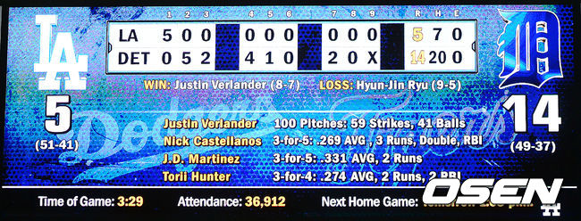 LA 다저스가 디트로이트에게 5-14로 패했다./youngrae@osen.co.kr