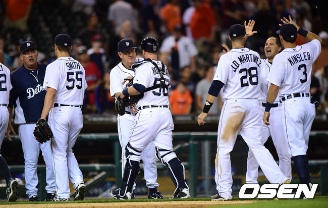 승리를 거둔 디트로이트 선수들이 기뻐하고 있다./youngrae@osen.co.kr