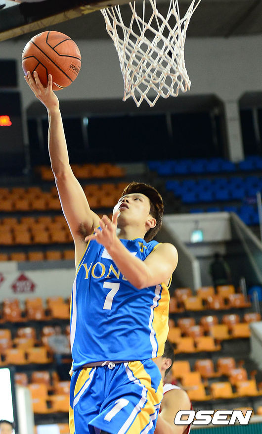 9일 오후 서울 잠실학생체육관에서 벌어진 'KCC와 함께하는 2014 아시아-퍼시픽 대학농구 챌린지' 준결승전, 연세대(한국)와 브리검영대(BYU,미국)의 경기, 1쿼터 연세대 김기윤이 레이업 슛을 시도하고 있다.