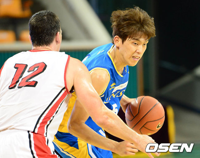 3일 오후 서울 잠실학생체육관에서 'KCC와 함께하는 2014 아시아-퍼시픽 대학농구 챌린지' 준결승전, 연세대(한국)와 브리검영대(BYU,미국)의 경기,1쿼터 연세대 정성호가 돌파를 시도하고 있다.
