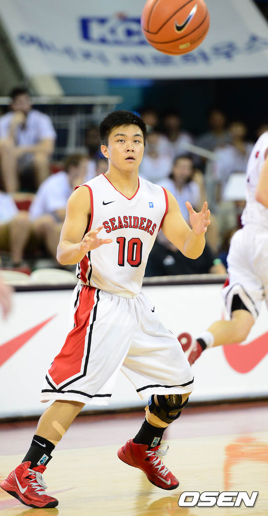9일 오후 서울 잠실학생체육관에서 벌어진 'KCC와 함께하는 2014 아시아-퍼시픽 대학농구 챌린지' 준결승전, 연세대(한국)와 브리검영대(BYU,미국)의 경기, 3쿼터 브리검영대 저스틴 얌존이 역습을 위해 패스를 받고 있다.