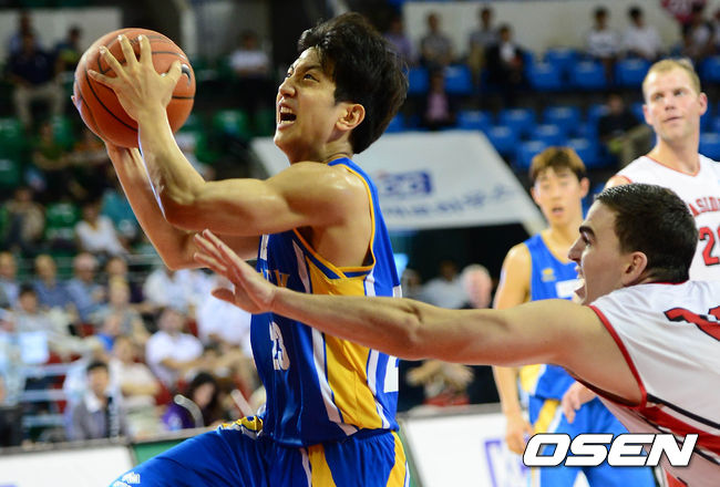 9일 오후 서울 잠실학생체육관에서 벌어진 'KCC와 함께하는 2014 아시아-퍼시픽 대학농구 챌린지' 준결승 연세대(한국)와 브리검영대(BYU,미국)의 경기, 4쿼터 연세대 허훈이 수비를 피해 레이업 슛을 시도하고 있다.