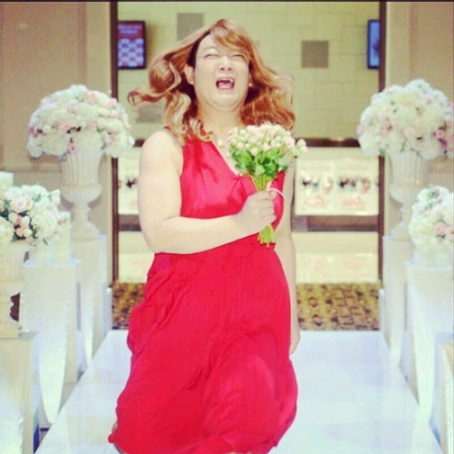 공개된 사진은 유민상이 여장한 모습이다. 금발 가발을 쓰고 붉은색 민소매 드레스를 입고 있는 그는 무언 가를 향해 돌진하는 모습이라 눈길을 끈다. 입을 크게 걸리며 과장된 몸짓을 하고 있어 보는 이를 폭소케 한다.