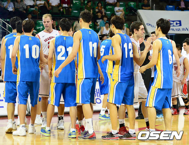 경기종료후 연세대 선수들과 브리검영대 선수들이 악수를 하고 있다./greenfield@osen.co.kr