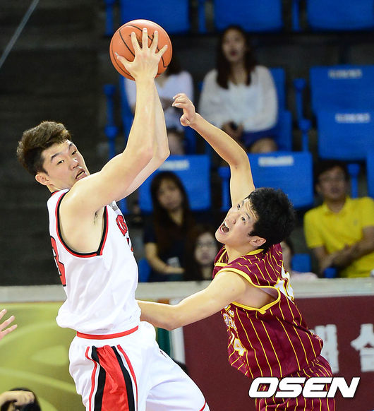 9일 오후 서울 잠실학생체육관에서 벌어진 'KCC와 함께하는 2014 아시아-퍼시픽 대학농구 챌린지' 준결승, 고려대(한국)와 경희대(한국)의 경기, 2쿼터 고려대 이승현이 리바운드에 성공하고 있다.