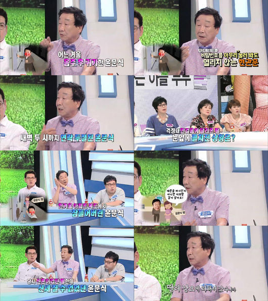 또 이날 방송에서 윤문식은 “재혼 후 어떤 점이 제일 좋은가”라는 MC 김경란의 물음에 “밤만 되면 술 약속 잡기 바빴는데, 이제는 아내 생각에 술자리 중간에 도망 나오는 좋은(?) 버릇이 생겼다”며, “무엇보다 얼마 전 아들 결혼 상견례 자리에 아내와 함께 참석할 수 있었던 것이 참 좋았다”고 밝혀 보는 이들을 흐뭇하게 만들었다.