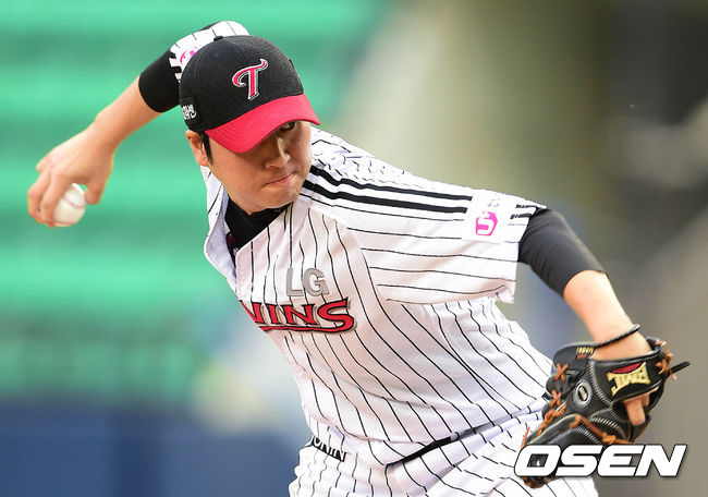 LG 선발 투수 우규민이 1회초 힘차게 공을 던지고 있다.