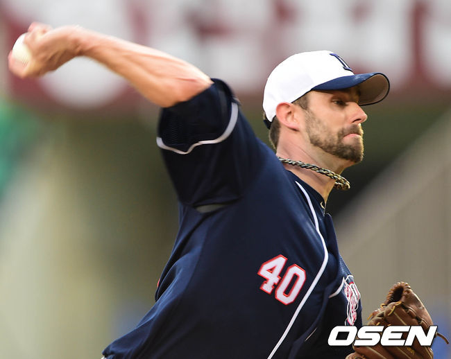 1회말 두산 선발 투수 니퍼트가 힘차게 공을 던지고 있다.