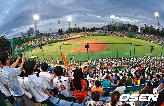 8일 오후 충북 청주구장에서 열린 2014 한국야쿠르트 세븐 프로야구 한화 이글스와 넥센 히어로즈의 경기,역대 세번째 최소경기. 프로야구 337경기만에 400만 관중 돌파한 가운데 경기가 진행되고 있다.