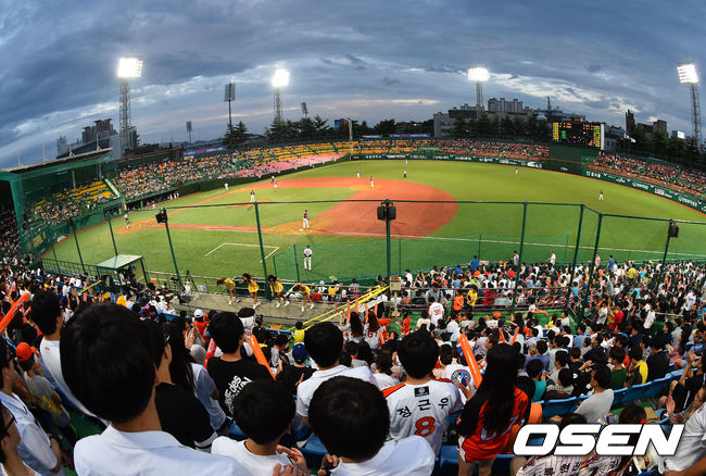 8일 오후 충북 청주구장에서 열린 2014 한국야쿠르트 세븐 프로야구 한화 이글스와 넥센 히어로즈의 경기,역대 세번째 최소경기. 프로야구 337경기만에 400만 관중 돌파한 가운데 경기가 진행되고 있다.