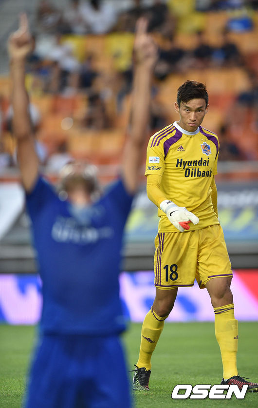 전반 수원 로저에게 선제골을 허용한 울산 김승규가 아쉬운 표정을 짓고 있다.