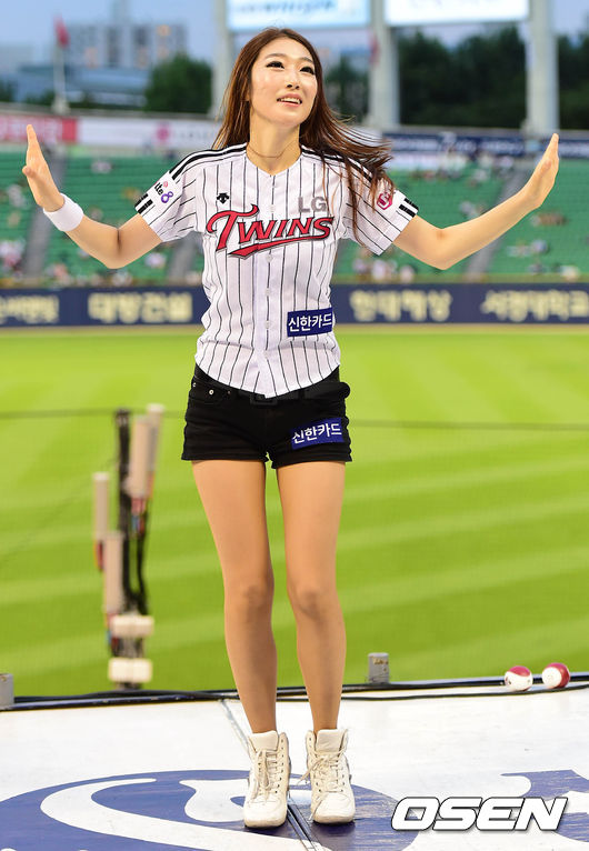 경기중 LG 치어리더들이 열정적인 응원무대를 선사하고 있다.